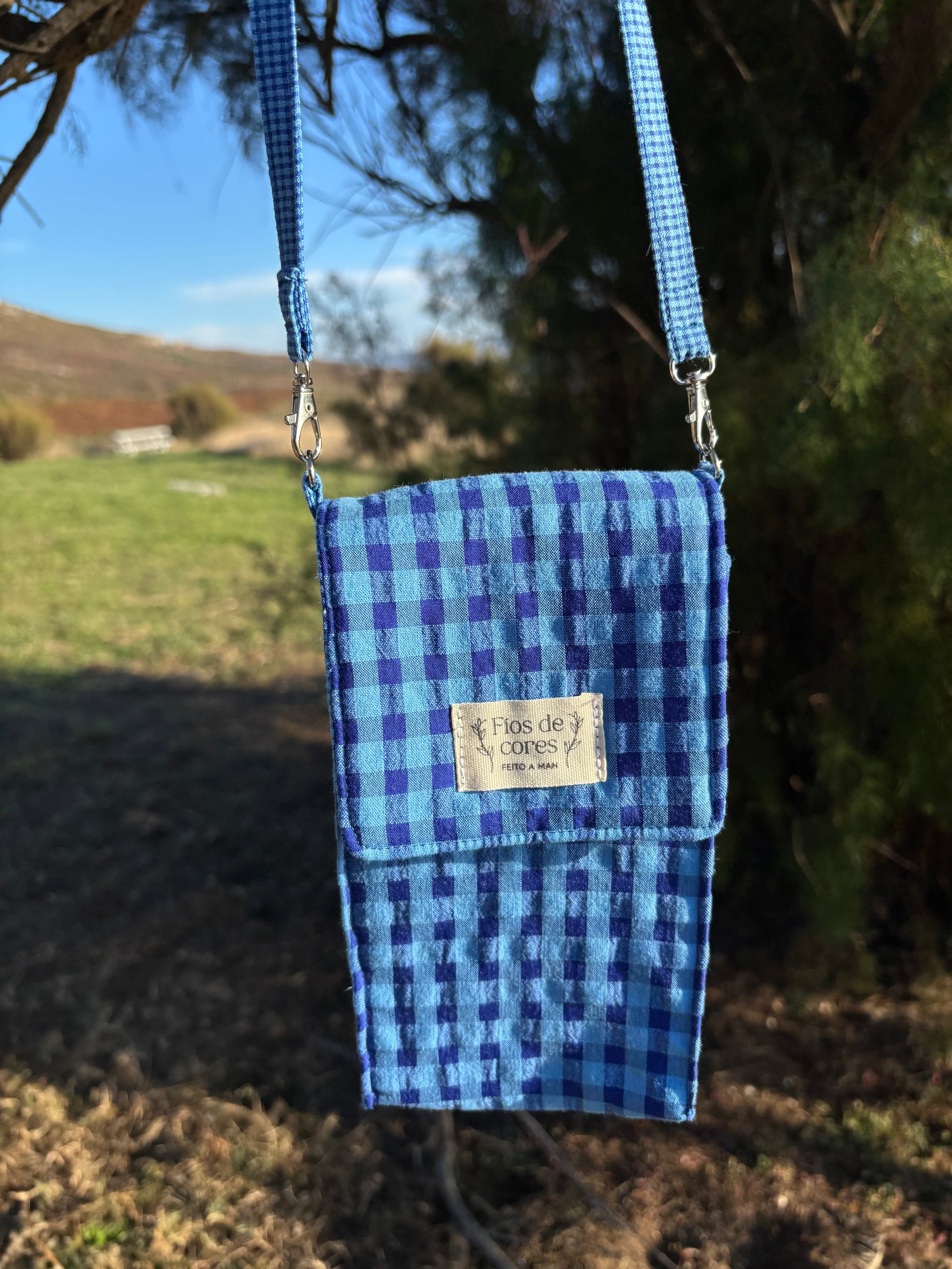 Bolso feita a man de telas con diferentes motivos e estampados.