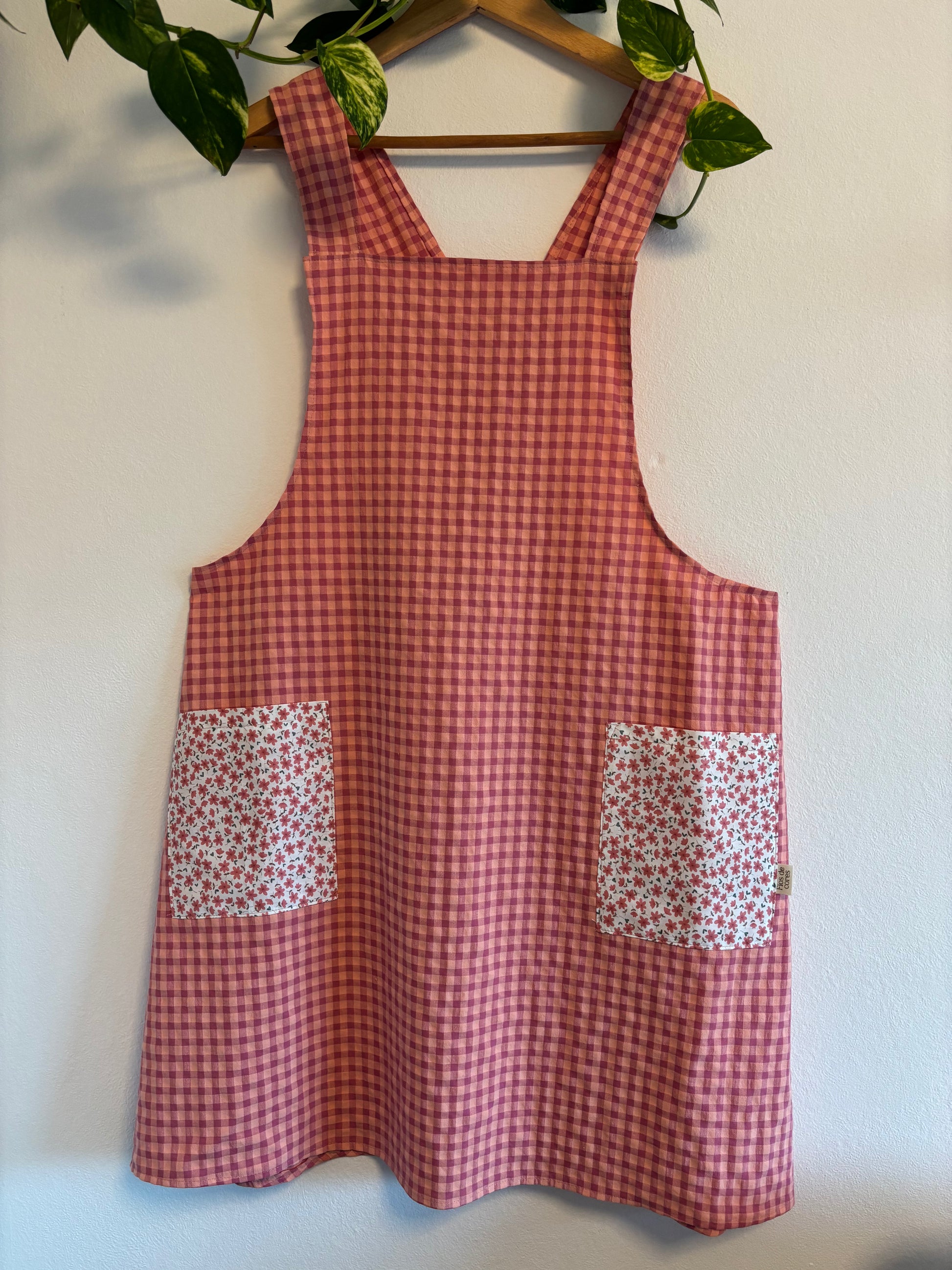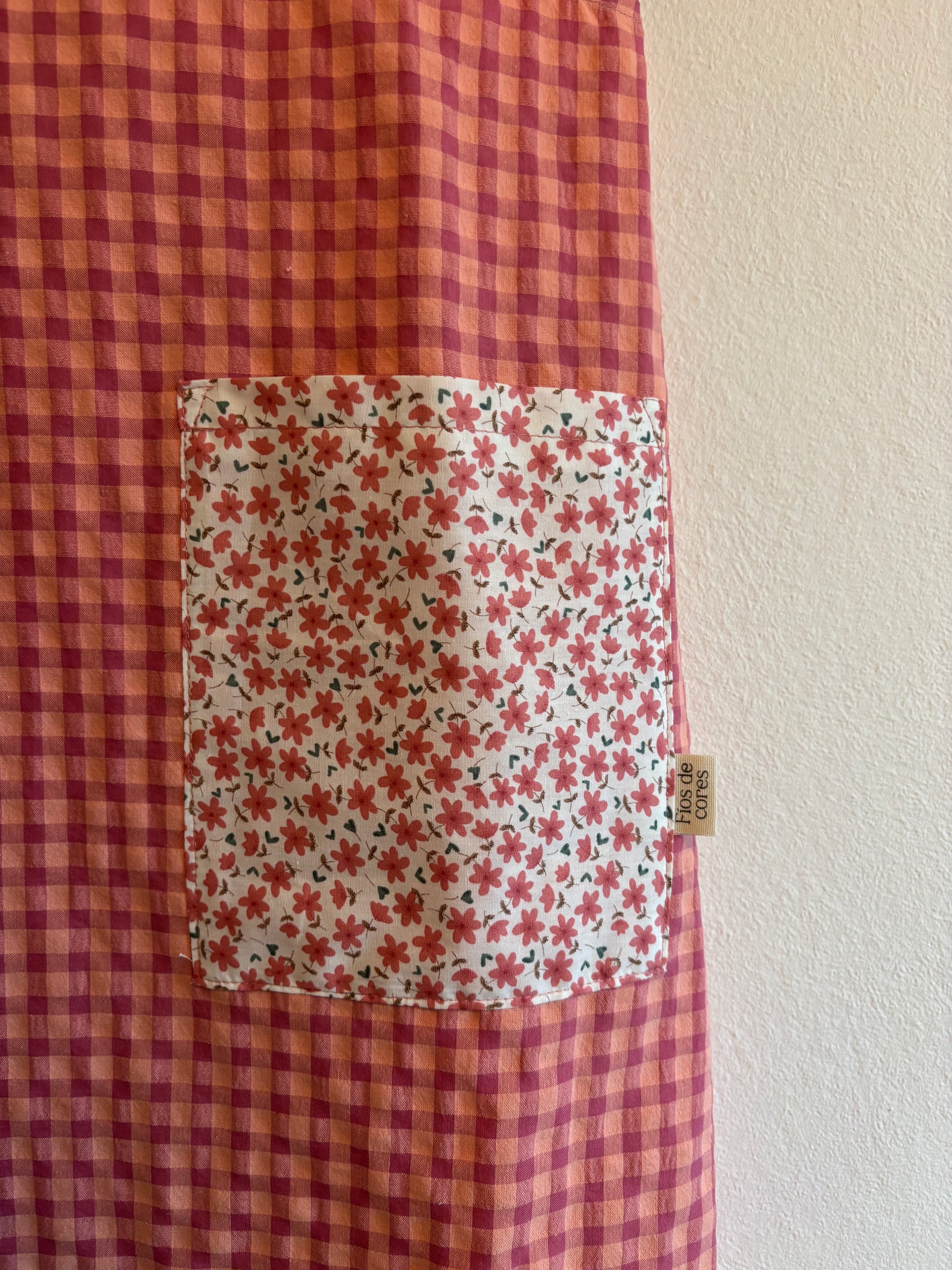 Ao escoller a combinación, o mandil será confeccionado coa tela da esquerda, e os bolsillos serán da tela da dereita.