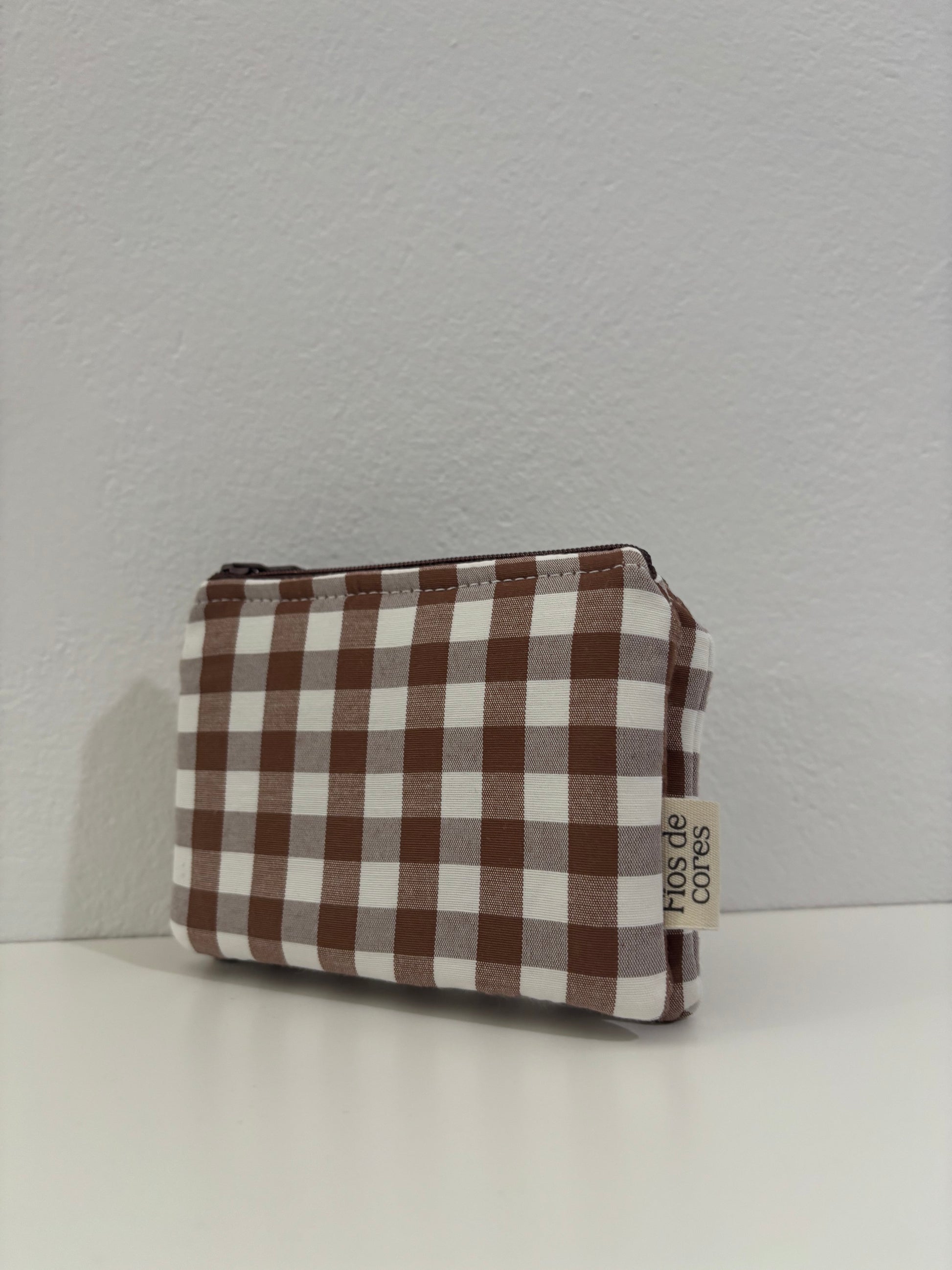 Monedero feito a man de telas con diferentes motivos e estampado.